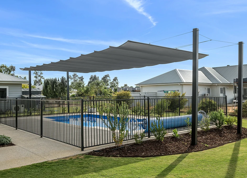 Glen and Lauren recently built their dream home in sunny Mulwala NSW, just outside Yarrawonga. Their deck looks out to their newly installed swimming pool. With two young boys, they worried that the kid's skin was protected when swimming. Glen describes having considered many alternative pool shade options, even having assembled and disassembled a marquee, attempting to replicate an over pool shade sail.